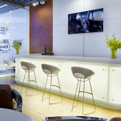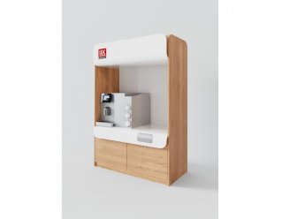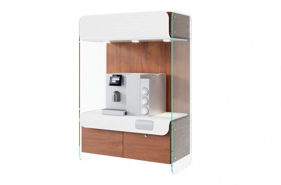 Закажите уникальный кофешкаф в компании KARAT и Вы получите индивидуальное дизайн-решение, которое будет максимально соответствовать Вашему интерьеру, а само изделие будет обладать высокими функциональностью и практичностью. Разрабатывая новые изделия, мы всегда детально изучаем опыт эксплуатации аналогов и находим новые решения, позволяющие повысить износостойкость и эргономику. Так в наших шкафах применение акрилового камня и его "свес-изгиб" в значительной степени продливают срок службы рабочей поверхности и фасадов.