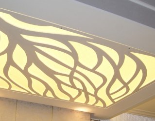 Для решения нестандартных идей по оформлению потолков рекомендуем обратить внимание на акриловый камень. Этот материал позволяет полностью изменить свой подход к отделочным материалам. Это не только высокоэкологичный материал и широкая цветовая палитра, но и благодаря термоформингу, изделие может принять любую форму. Не горючесть камня позволяет с легкостью монтировать светодиодную подстветку. Конструкторское бюро рассчитывает возможность замены ленты, в случае перегорания ламп. Вместе с расчетом вы получаете 3D макет на согласование. Доставку и монтаж осуществляют своими силами специалисты компании. Предоставляется гарантия и постгарантийное обслуживание.