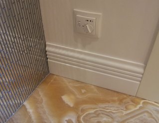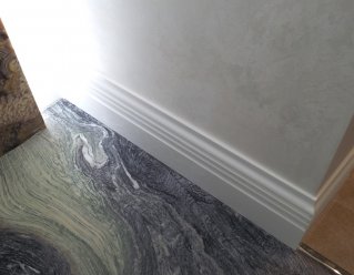 Дизайнеры любят использовать акриловый камень в качестве отделки интерьера. Вентиляционные решетки, плинтусы, стеновые панели, экраны для радиаторов. В отличие от деревянных аналогов, акриловые изделия имеют эффект невидимых швов, таким образом, плинтус может быть единым, монолитным по всей площади. Кроме того рисунок, расцветка может полностью поддержать общую картинку интерьера, а иногда и стать уникальным акцентом. Благодаря термоформинку плинтус может трансформироваться так, как того требует дизайн. К тому же акриловый камень не горюч, вы можете скрыть всю электропроводку внутри. По желанию можно сделать фрезеровку и подсветку.