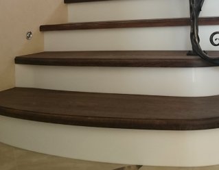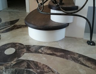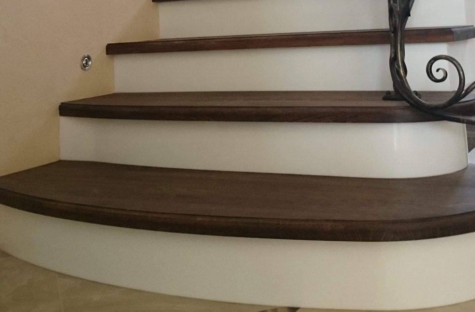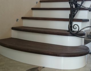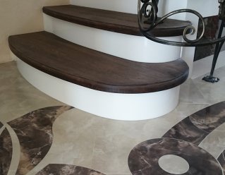 Отделка ступеней, перил, балясин все чаще встречается именно в искусственном камне. Эти материалы обеспечивают надежность и прочность любых конструкций. Экологические свойства гарантируют безопасность для здоровья. В местах с большой проходимостью эти два аспекта наиболее важны. Кроме того, уход за каменными изделиями не требует больших усилий. Из 1000 различных цветов и фактур легко подобрать тот, который наиболее подходит общему дизайну интерьера. Облицовка подступенков акриловым камнем сочетается с другими материалами (деревом, натуральным камнем, стеклом и пр.), материал хорошо проводит тепло и принимает температуру помещения. Ступени из агломерата гораздо прочнее и практичнее натурального камня.