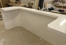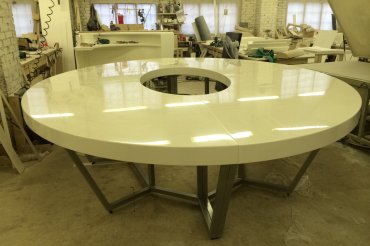 Corian Glacier White - самый продаваемый акриловый камень. Белоснежный, практичный и пластичный. Его часто используют именно при изготовлении сложных проектных изделий. Непористая структура камня исключает появление каких-либо пятен.