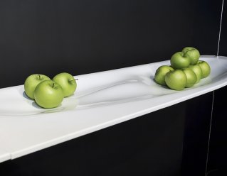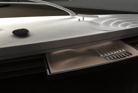 Однажды владелец компании KARAT увидел интересный проект корейского дизайнера Чонг Че Хун. Он рассказал удивительную историю, как в детстве все время проводил за холмом, прыгал в воду, плескался, радовался, наблюдал за природой. Смотрел, как плывут облака, и старался ловить их тени. Будучи студентом, Чонг Че Хун вспомнил свои эмоции от созерцания природы, и решил реализовать это в интерьере. Таким образом был создан удивительный проект кухни, где дизайнеру удалось объединить среду обитания человека с миром природы. Однако сильнейшее разочарование ждало молодого дизайнера, его проект никто не решался воплотить в жизнь, если бы спустя несколько лет компанию KARAT и Чонг Че Хуна не свела сама судьба. Кухня "Белое озеро" предстала во всей красе на выставке "АРХМОСКВА" в 2012 году.