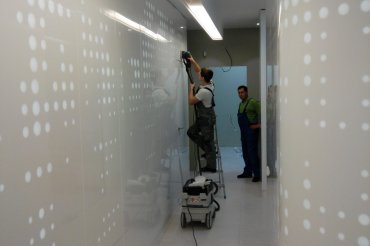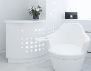 В конце 2014 года радушно распахнул свои двери петербургский филиал Бостонского Института Эстетической Стоматологии - клиника Dental Spa. Компания KARAT приняла активное участие в его оснащении. Поскольку для реализации требовались высокоэкологичные материалы, дизайнеры предусмотрели в своем проекте именно акриловый камень. В Санкт-Петербурге компания KARAT занимает лидирующие позиции по изготовлению сложных проектных работ. Одной из важнейших и сложных задач проекта стало изготовление стеновых панелей, подсвеченных изнутри. Поскольку к подсветке важно иметь доступ, чтобы менять перегоревшие лампочки, конструкторское бюро продумало все варианты.